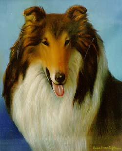 A pastel of Ch. El' Troubadour of Arken done by the famed Collie artist Howard Van Dyck. It was done in 1933 in exchange for a stud service to Blaze's son, Ch. Future of Arken. It is gorgeous!